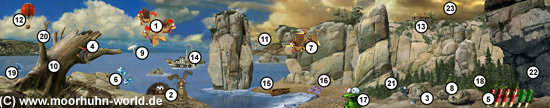 Haus auf der Klippe (siehe Punkt 13) kreist während des gesamten Spiels eine